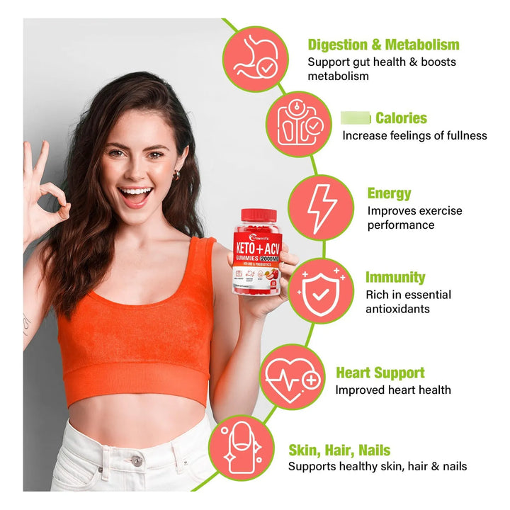 ¿Estás buscando una forma deliciosa y fácil de mejorar tu digestión, aumentar tu energía y desintoxicar tu cuerpo? Las Gomitas de Vinagre de Sidra de Manzana Keto con probióticos y vitamina B12 son la solución perfecta para ti. Diseñadas para hombres y mujeres, estas gomitas no solo son fáciles de tomar, sino que también ofrecen múltiples beneficios para tu salud.