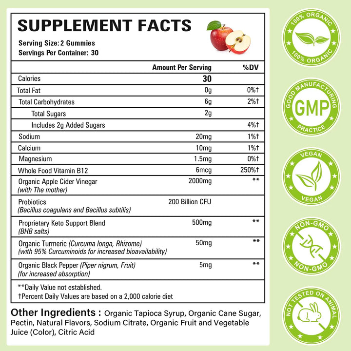 - 🍏 Digestión saludable: Los probióticos y el vinagre de sidra de manzana promueven una flora intestinal equilibrada.