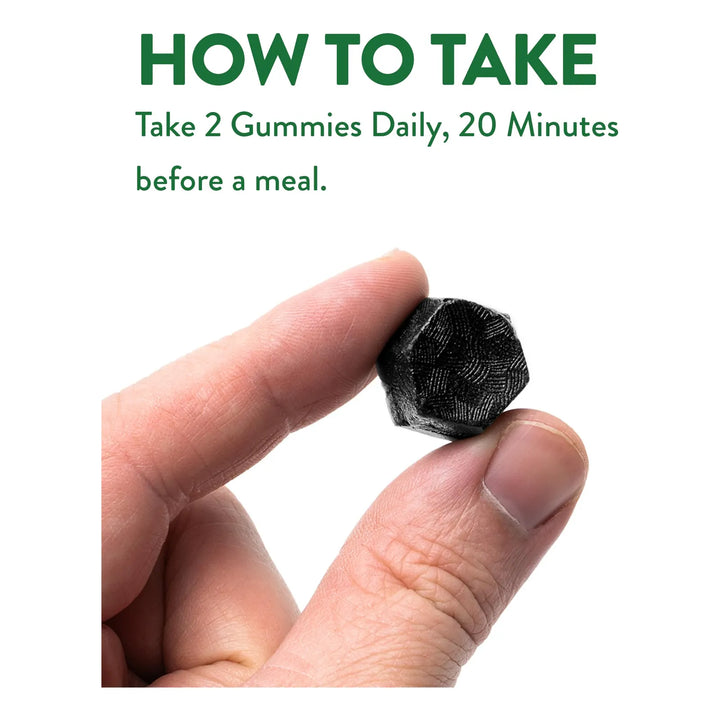 - Toma dos gomitas al día, preferiblemente 20 minutos antes de una comida.
