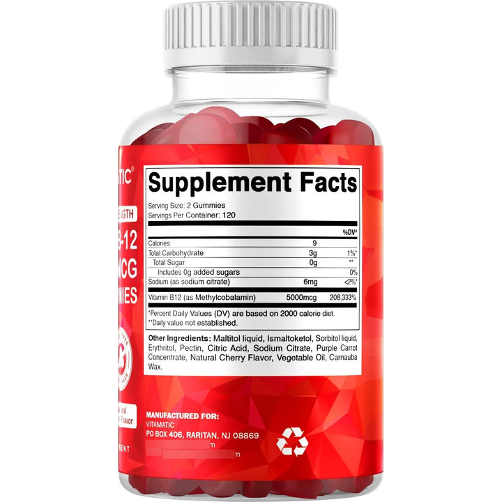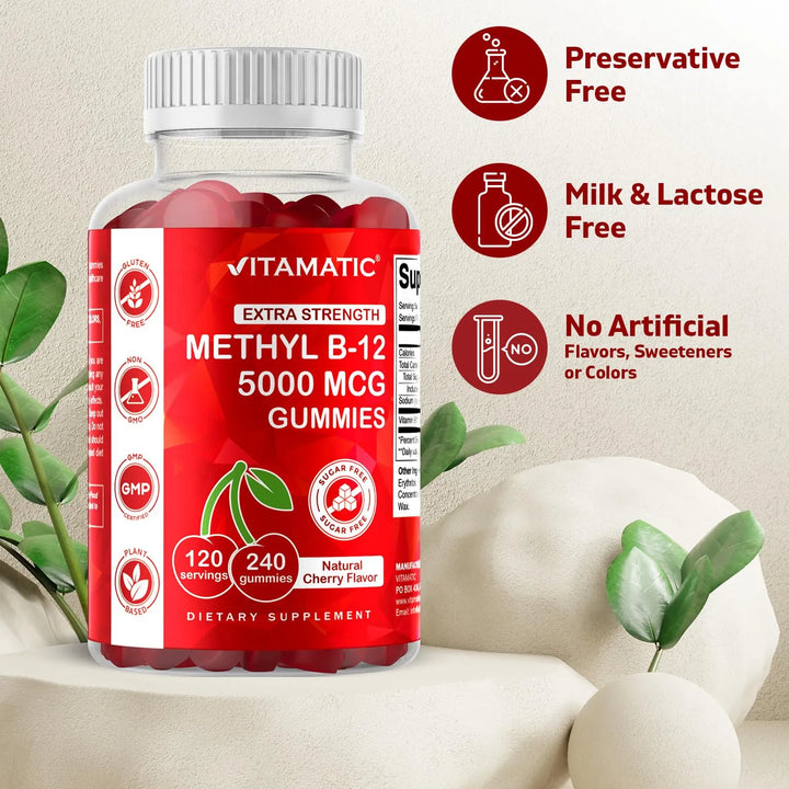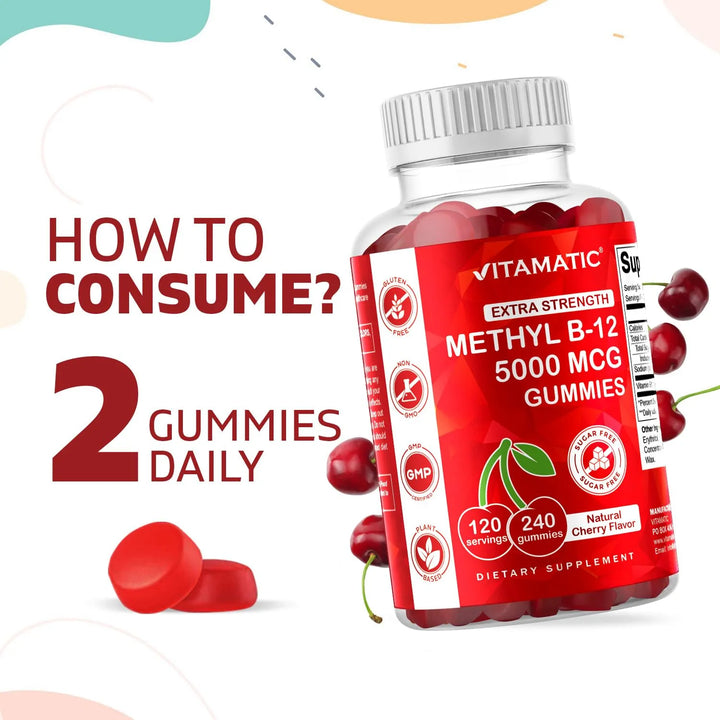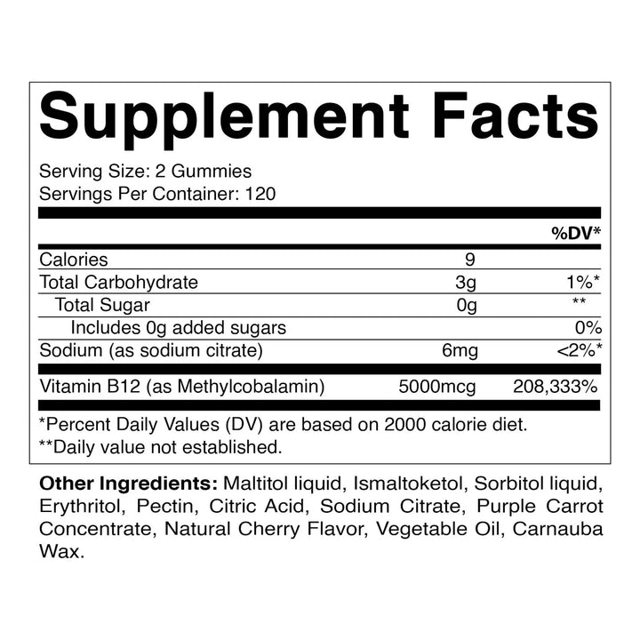 - Fórmula extra fuerte: 5000 mcg de B12 en cada gomita para una absorción óptima. 💊