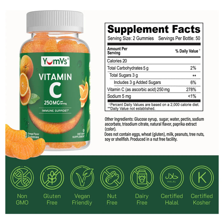 - 🍊 Refuerza tu sistema inmunológico con 250 mg de vitamina C de alta potencia, equivalente al 278% de la cantidad diaria recomendada.