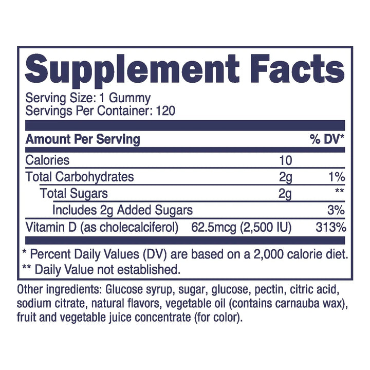 ¿Preocupado por el sistema inmunológico de tus hijos? Estas gomitas están especialmente formuladas para apoyar la salud ósea y fortalecer las defensas naturales. Cada gomita contiene 2,500 UI de vitamina D3, la dosis ideal para mantener a tus pequeños llenos de energía y listos para explorar el mundo.