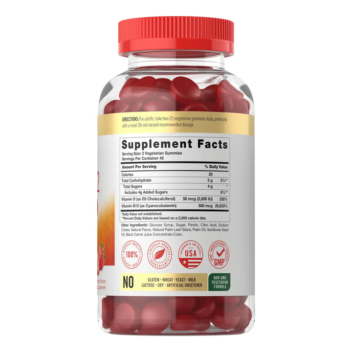 Estas gomitas están formuladas para personas como tú, que buscan un estilo de vida saludable sin sacrificar el placer. Con ingredientes naturales, sin gluten y sin OMG, son ideales para vegetarianos y para quienes desean una alternativa libre de químicos. Cada porción te aporta 50 mcg de vitamina D y 500 mcg de vitamina B12, nutrientes clave para fortalecer tu sistema inmunológico, mejorar tu energía y apoyar tu bienestar emocional. ¿Por qué conformarte con pastillas aburridas cuando puedes tener un suplemento que te encantará tomar todos los días?