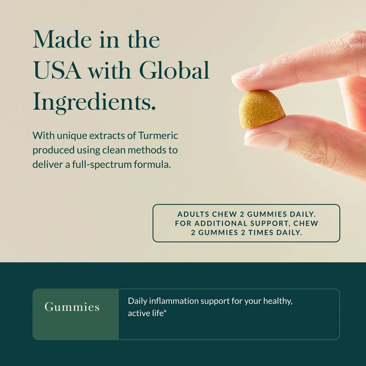 La cúrcuma, conocida por sus propiedades antiinflamatorias y antioxidantes, se combina con hierbas de apoyo para crear un suplemento que no solo es efectivo, sino también fácil de tomar. Olvídate de pastillas difíciles de tragar o sabores desagradables. Nuestras gomitas son veganas, sin gluten y fabricadas con los más altos estándares de calidad en Estados Unidos. Cada porción contiene 60 mg de curcuminoides, potenciando tu bienestar desde la primera toma.