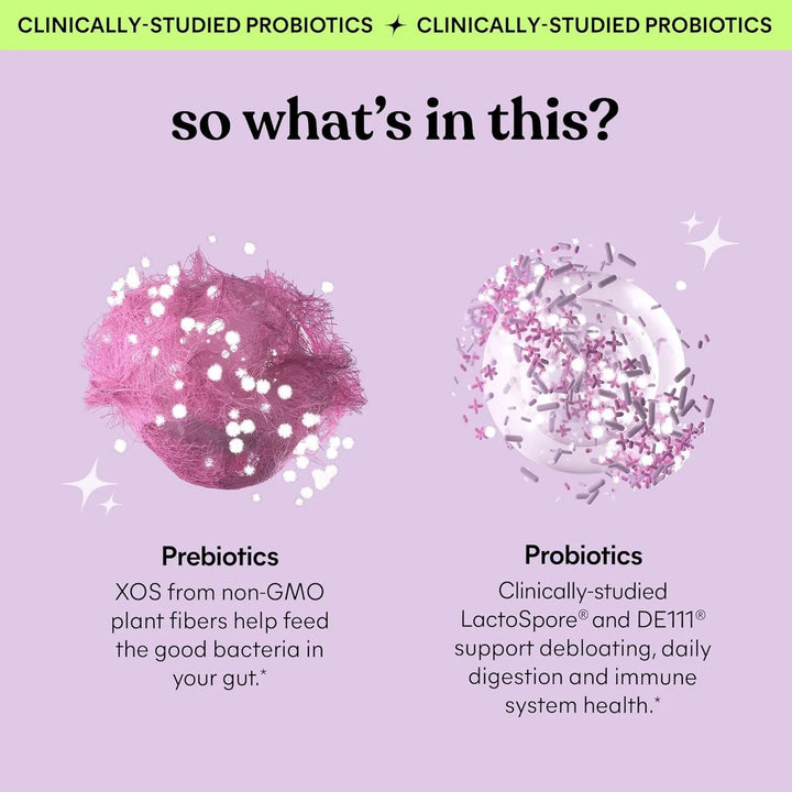 Con una combinación única de 2 probióticos clínicamente estudiados y un prebiótico potente, estas gomitas actúan desde la primera dosis. LactoSpore y DE111 sobreviven al ácido estomacal para colonizar tu intestino, mientras los XOS (xilooligosacáridos) alimentan las bacterias buenas. El resultado? Una digestión más ligera, menos hinchazón y un sistema digestivo que funciona como un reloj. Y lo mejor: son vegetarianas, sin gluten y sin ingredientes artificiales. ¡Salud que se siente!