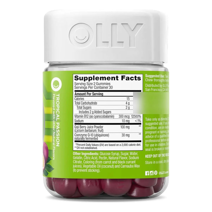 Imagina despertar cada mañana con la energía necesaria para conquistar tus metas, sin esos molestos bajones de media tarde. Con OLLY Daily Energy, obtienes ingredientes clínicamente probados como la vitamina B12, CoQ10 y Goji Berry, que trabajan juntos para apoyar la producción de energía a nivel celular. ¡Sin nerviosismo, sin crash, solo energía renovable!
