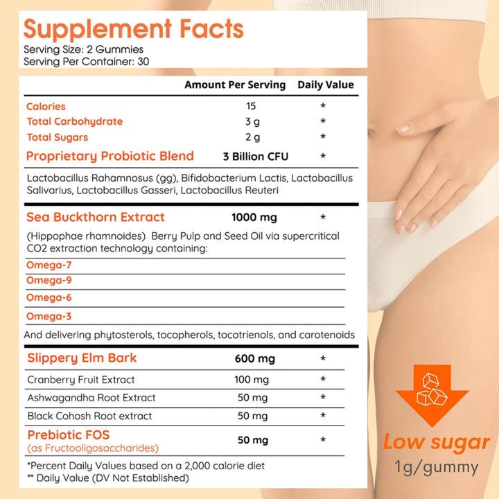 Imagina despertar cada mañana sintiéndote fresca, cómoda y segura. Estas gomitas no solo alivian la sequedad vaginal, sino que también nutren desde dentro con una poderosa combinación de Omega 6, 7 y 9, probióticos y prebióticos. Olvídate de cremas pegajosas o cápsulas difíciles de tragar; nuestro sabor a naranja y melocotón hace que cuidarte sea un placer.