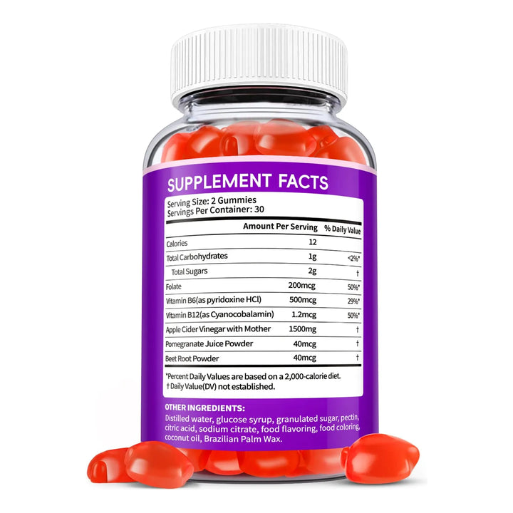 Imagina poder disfrutar de todos los beneficios del vinagre de sidra de manzana sin tener que soportar su sabor intenso. Estas gomitas están repletas de vinagre de sidra de manzana con la madre, lo que garantiza que obtengas todos sus nutrientes esenciales. Además, están enriquecidas con probióticos y vitamina B12 para apoyar tu digestión, energía y bienestar general. Perfectas para quienes siguen una dieta keto o simplemente buscan una forma fácil de desintoxicar su cuerpo.