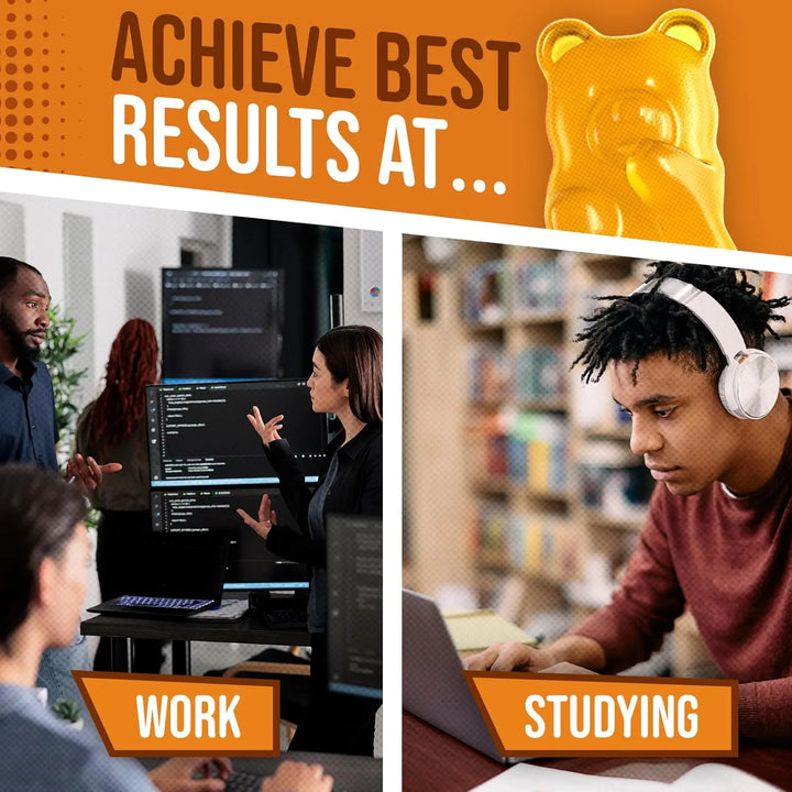 - Consume 2 gomitas al día, preferiblemente por la mañana o antes de actividades que requieran concentración.