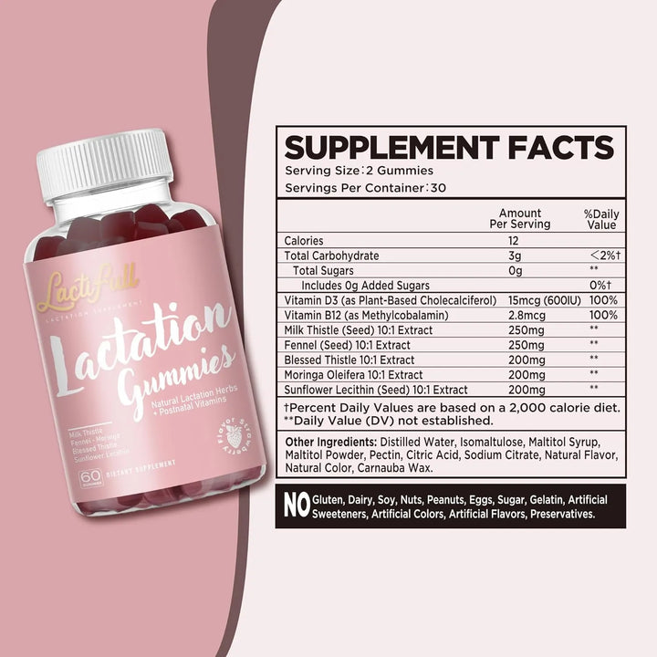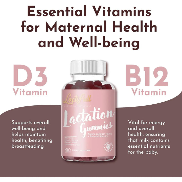 Las Gomitas LactiFull actúan estimulando naturalmente la producción de leche gracias a su mezcla de hierbas galactagogas como el cardo mariano y el hinojo. Estas plantas han sido utilizadas tradicionalmente para apoyar la lactancia. Además, las vitaminas D3 y B12 ayudan a reponer los nutrientes que tu cuerpo necesita después del parto, brindándote más energía y promoviendo tu bienestar general.
