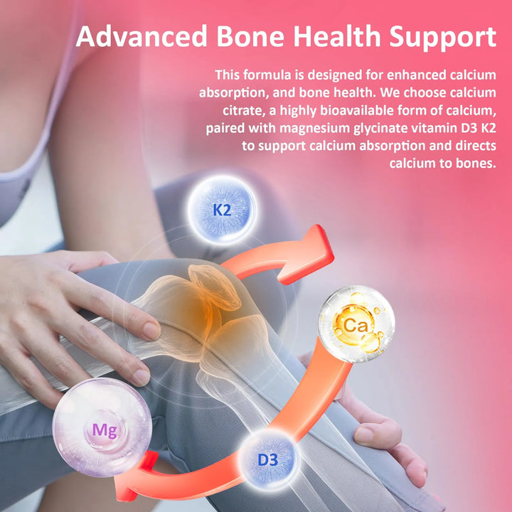- 💪 Salud ósea reforzada: El calcio, vitamina D3 y K2 trabajan juntos para llevar el calcio directamente a tus huesos, fortaleciéndolos desde dentro.