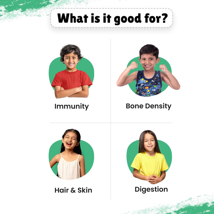 - 🦴 Huesos Fuertes como Robles: La vitamina D3 promueve una densidad ósea saludable para que crezcan sanos y altos