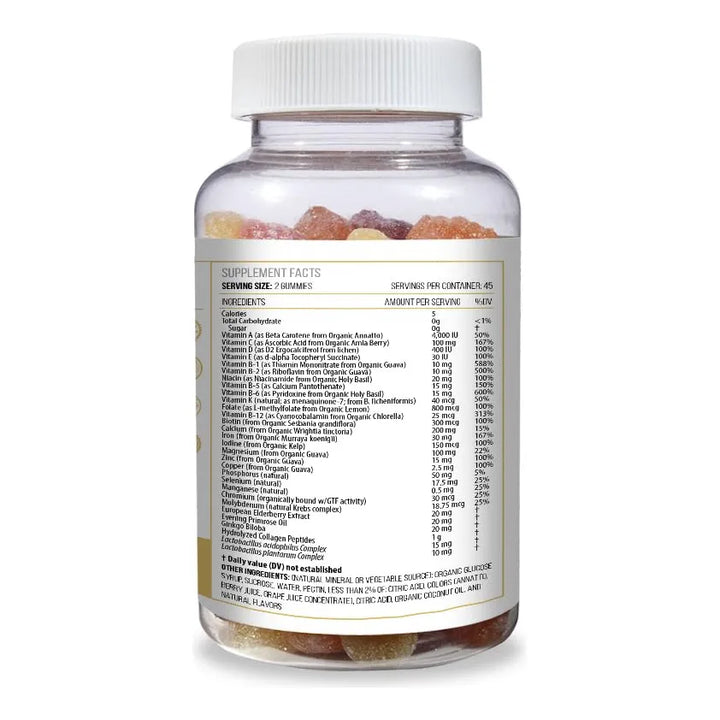 No dejes que la edad defina tu bienestar. Con ingredientes como CoQ10, vitamina E y biotina, estas gomitas apoyan la salud de tu piel, digestión y niveles de energía. ¡Es hora de sentirte tan radiante por dentro como por fuera!