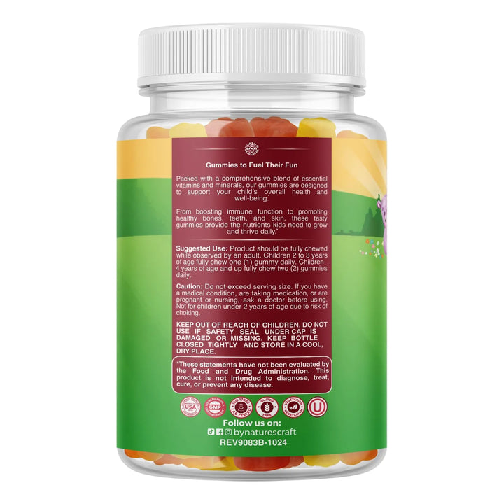 Estas gomitas están científicamente formuladas para proporcionar nutrientes clave que apoyan el sistema inmunológico, el crecimiento y la energía de los niños. Cada gomita contiene una mezcla equilibrada de vitaminas y minerales que se absorben fácilmente, asegurando que tu hijo reciba lo que necesita para mantenerse saludable y activo.