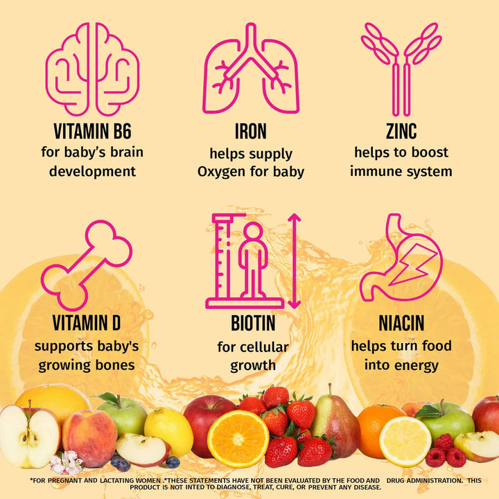 - 🍓 Delicioso sabor a fruta: Olvídate de pastillas difíciles de tragar. Disfruta de un momento dulce mientras cuidas de ti y tu bebé.