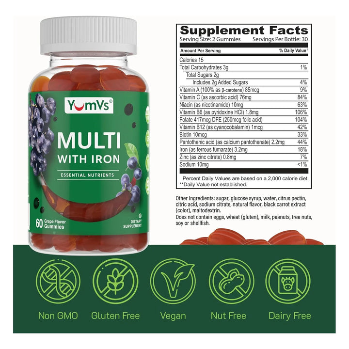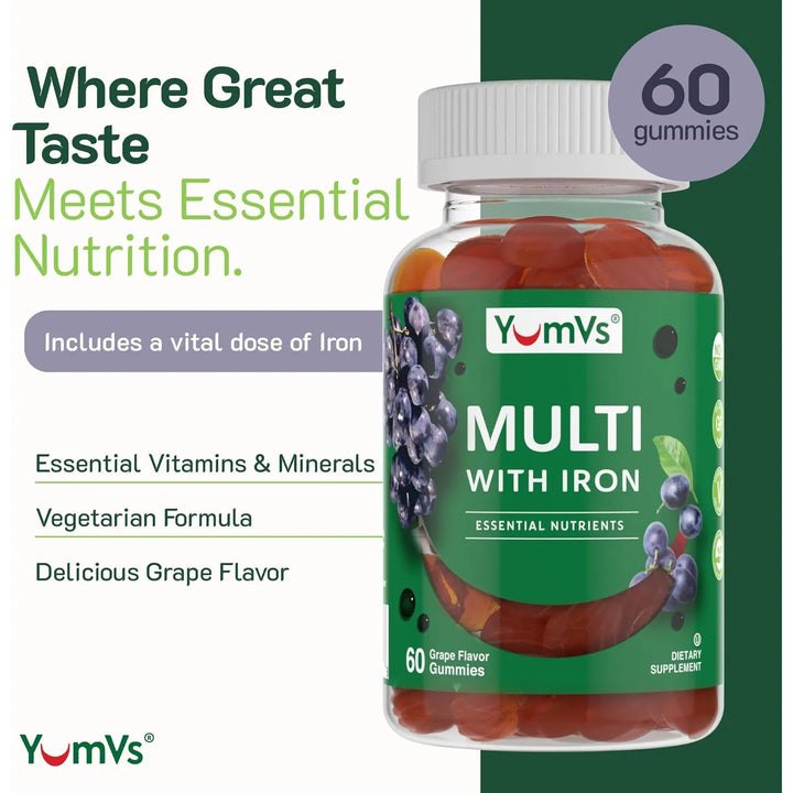 ¿Cansado de vitaminas aburridas que saben a medicina? Descubre las Gomitas Multivitamínicas YUM-V'S, deliciosas y nutritivas, diseñadas para adultos que buscan un suplemento fácil de tomar y lleno de beneficios. Con hierro añadido y una mezcla perfecta de vitaminas esenciales, estas gomitas son tu aliado para mantenerte saludable sin sacrificar el sabor.