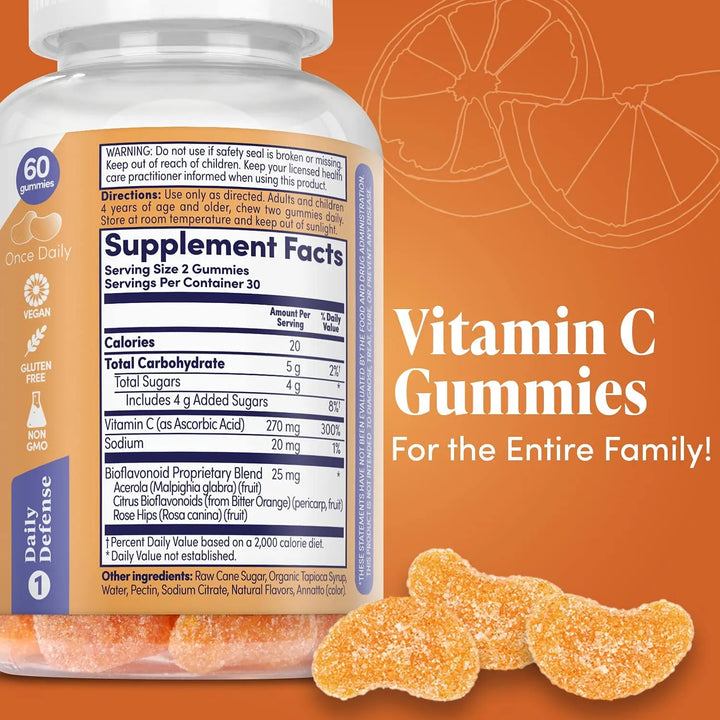 Nuestras Gomitas de Naranja con Vitamina C están formuladas para proporcionar un apoyo inmunológico efectivo. La vitamina C, combinada con bioflavonoides, acerola y rosa mosqueta, trabaja sinérgicamente para fortalecer las defensas naturales del cuerpo. Estos ingredientes no solo aumentan la absorción de la vitamina C, sino que también proporcionan antioxidantes adicionales para combatir los radicales libres.