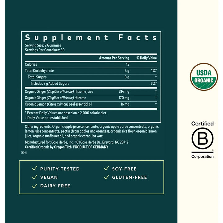 El jengibre, conocido por sus propiedades digestivas, se combina con el refrescante limón para crear una solución deliciosa y efectiva. No más pastillas difíciles de tragar o sabores desagradables. Estas gomitas son veganas, orgánicas y libres de ingredientes artificiales, porque tu bienestar merece lo mejor.