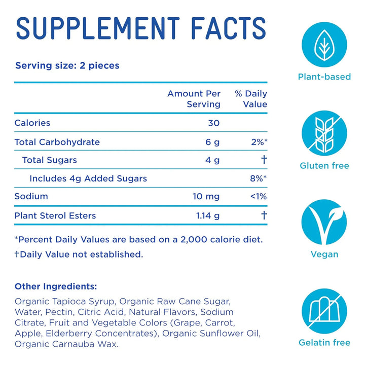 Estas gomitas no son un simple dulce: contienen 2280 mg de ésteres de esterol vegetal por día, la dosis clínicamente probada para ayudar a mantener niveles saludables de colesterol. Más de 100 estudios científicos respaldan su eficacia, y miles de médicos las recomiendan. ¿Por qué conformarte con menos cuando puedes tener un producto respaldado por la ciencia y disfrutar de su delicioso sabor?