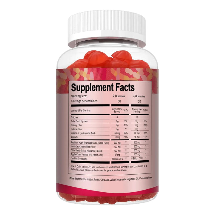 Con una mezcla única de fibra de psyllium, probióticos y superalimentos como la chía y el vinagre de sidra de manzana, cada porción te ofrece 0.56 oz de fibra de alta resistencia y 5 mil millones de UFC de Bacillus coagulans. ¿Lo mejor? Su sabor irresistible y su formato práctico hacen que cuidarte sea tan fácil como disfrutar un dulce. Olvídate de los suplementos aburridos y descubre cómo estas gomitas pueden revolucionar tu bienestar desde la primera toma.