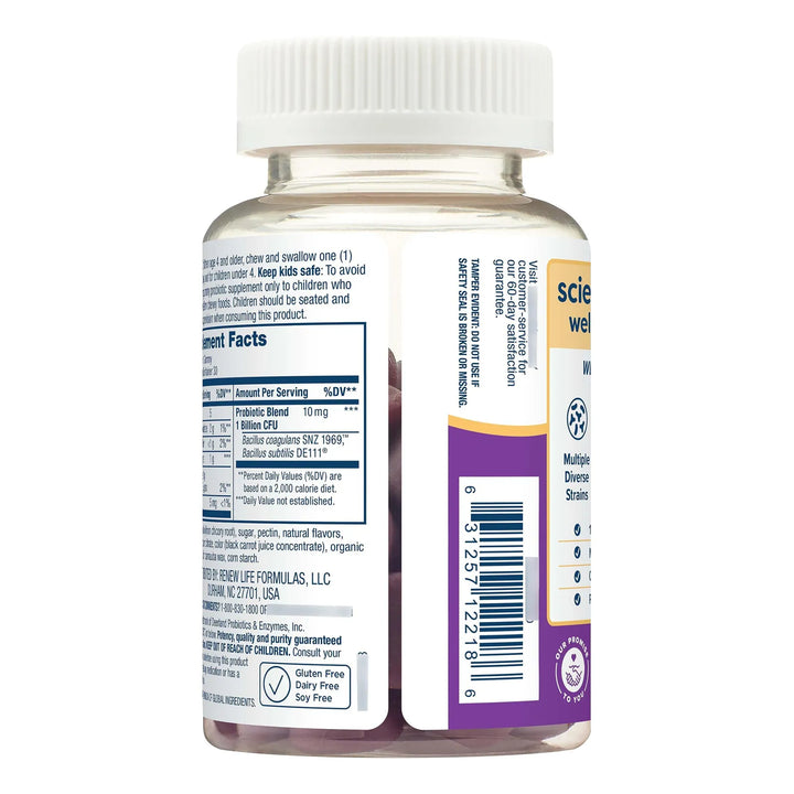Imagina la tranquilidad de saber que estás apoyando la salud de tu hijo con un suplemento fácil de tomar, libre de alérgenos comunes como lácteos, soja y gluten. Las cepas B. Coagulans y B. Subtilis trabajan en sinergia para aliviar molestias digestivas ocasionales, mientras que la fibra prebiótica de raíz de achicoria nutre las bacterias beneficiosas. ¡Una solución completa en un formato que los niños adoran!