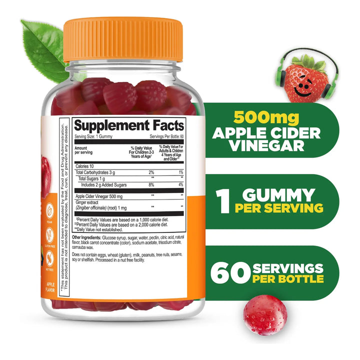 - 🍎 500 mg de vinagre de sidra de manzana con 'la madre' - Máxima potencia en cada gomita