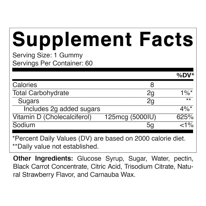 - 5000 UI de vitamina D3 por gomita - ¡Máxima potencia! 💊