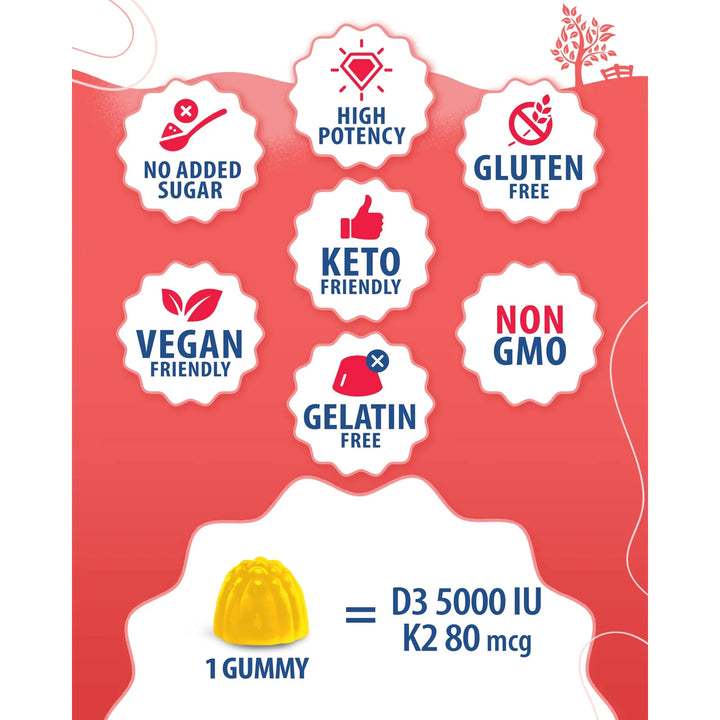 Gomitas De Vitamina D3 K2 5000 UI – Soporte Inmunológico Y Óseo En Un Delicioso Formato