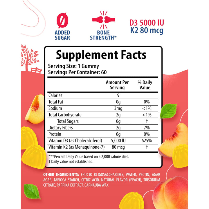 Imagina despertar cada mañana con la certeza de que estás cuidando de tu salud de la manera más sencilla y placentera. Con solo dos gomitas al día, estarás aportando a tu organismo la dosis óptima de vitamina D3 y K2, nutrientes esenciales para mantener tus huesos fuertes, tu sistema inmunológico en óptimas condiciones y tu bienestar general en su punto más alto.