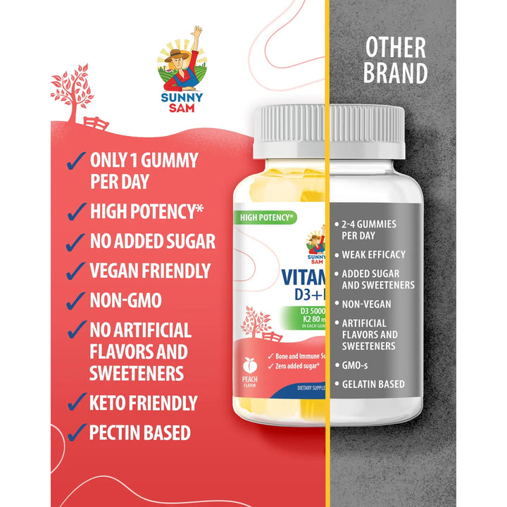 ¿Sientes que tu sistema inmunológico necesita un refuerzo? ¿Te preocupa la salud de tus huesos y articulaciones? Las gomitas de vitamina D3 K2 de SUNNY SAM son la solución perfecta para ti. Diseñadas para adultos que buscan un suplemento efectivo, delicioso y fácil de tomar, estas gomitas no solo fortalecen tu cuerpo, sino que también te brindan la energía y vitalidad que necesitas cada día.