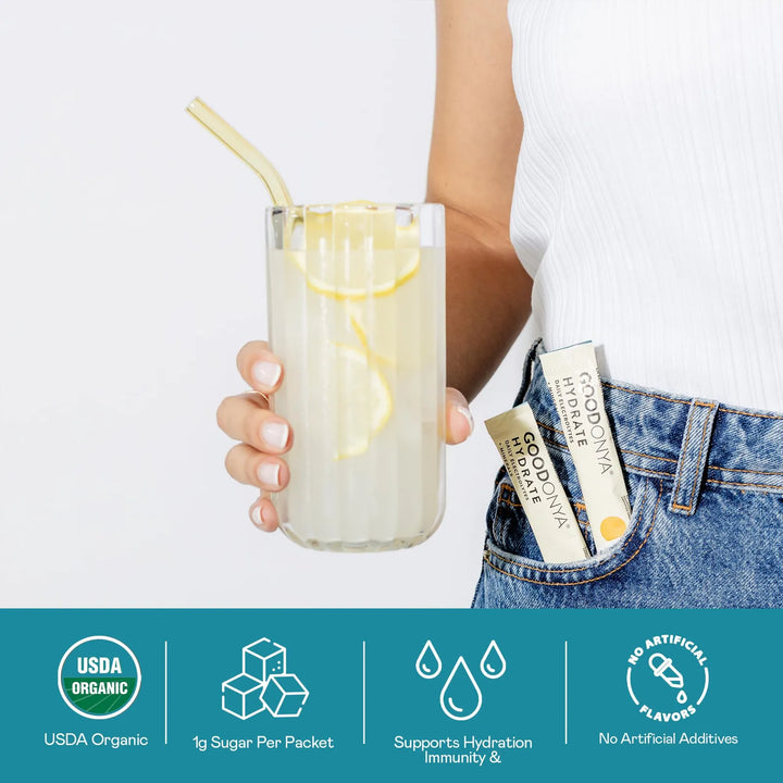 Imagina un producto que no solo hidrata tu cuerpo, sino que lo nutre con ingredientes 100% orgánicos, sin aditivos artificiales y con un delicioso sabor a limón. GOODONYA Hidratación Orgánica en Polvo es la solución que estabas buscando para mantenerte hidratado de manera saludable y refrescante, sin culpas ni complicaciones.