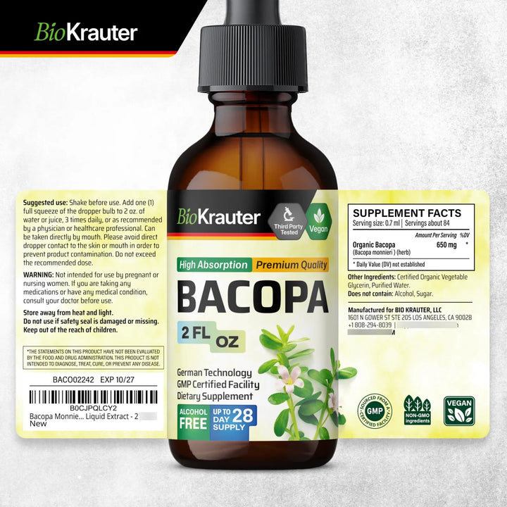 - Extracto puro de Bacopa Monnieri: Elaborado con ingredientes 100% naturales. 🌱