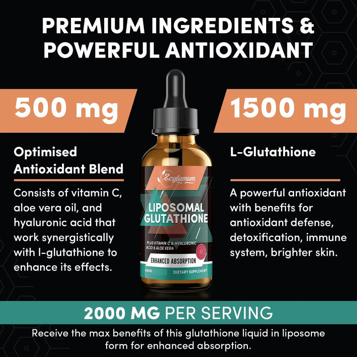 2. Fórmula Potente: 1500 mg de L-glutatión liposomal + 500 mg de antioxidantes. 💪