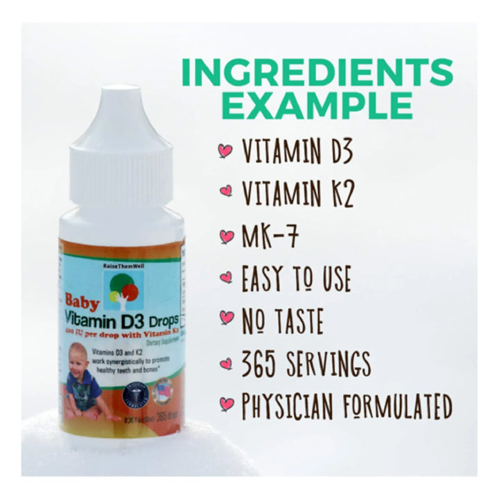 ¿Sabías que la vitamina D y K son esenciales para el desarrollo óseo y dental de tu bebé? Nuestras gotas de vitamina D y K están especialmente formuladas para brindar a tu pequeño los nutrientes que necesita desde sus primeros meses. Con una mezcla sinérgica de vitamina D3 y K2 MK7, este producto no solo fortalece huesos y dientes, sino que también asegura una absorción óptima, algo que la mayoría de las gotas de vitamina D3 no ofrecen.