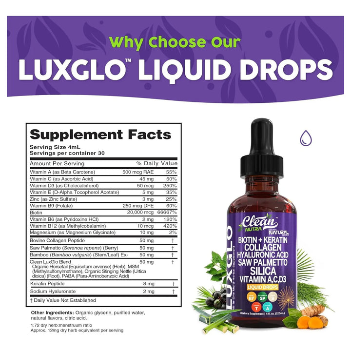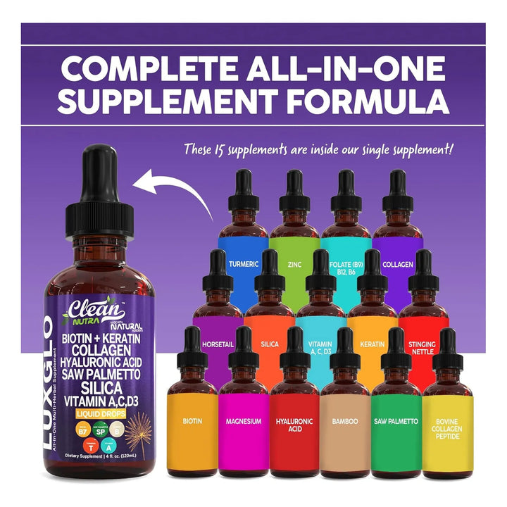 ¿Sueñas con un cabello más fuerte, una piel radiante y uñas que no se rompen al primer golpe? Imagina despertar cada mañana sintiéndote seguro de tu apariencia, sin preocuparte por los daños del día a día. Nuestras Gotas Líquidas de Biotina, Ácido Hialurónico y Queratina están diseñadas para nutrir tu cuerpo desde dentro, ofreciéndote resultados visibles que amarás.