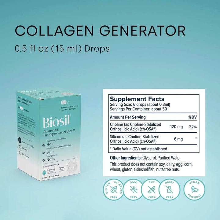 Mientras otros productos prometen milagros con ingredientes dudosos, nuestro generador de colágeno contiene solo lo esencial: ch-OSA patentado, agua purificada y fibra vegetal. Sin rellenos, sin sabores artificiales, sin OGM. Es vegano, seguro y respaldado por años de investigación clínica en EE.UU. y Europa. ¿Lo mejor? No necesitas tragar pastillas incómodas; unas simples gotas en tu bebida favorita son suficientes para activar tu belleza interior.