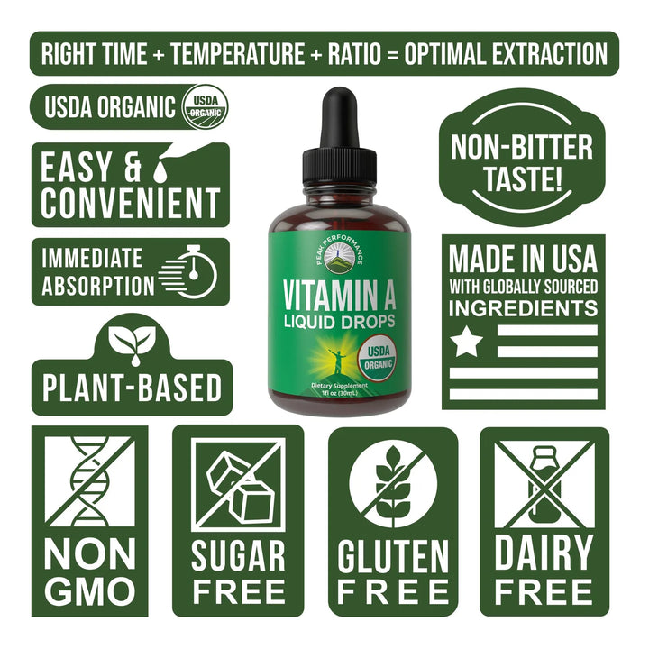 ¿Cansado de suplementos que prometen pero no cumplen? Descubre las Gotas Líquidas Orgánicas de Vitamina A, diseñadas para ofrecerte la máxima absorción y beneficios reales. Olvídate de las cápsulas difíciles de tragar o los suplementos que pasan por tu cuerpo sin aportar nada. Esta fórmula líquida certificada por el USDA es tu aliado para una salud radiant.