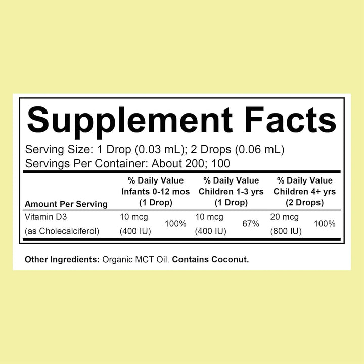 Gotas Orgánicas Líquidas Vitamina D3 Para Bebés 400 UI