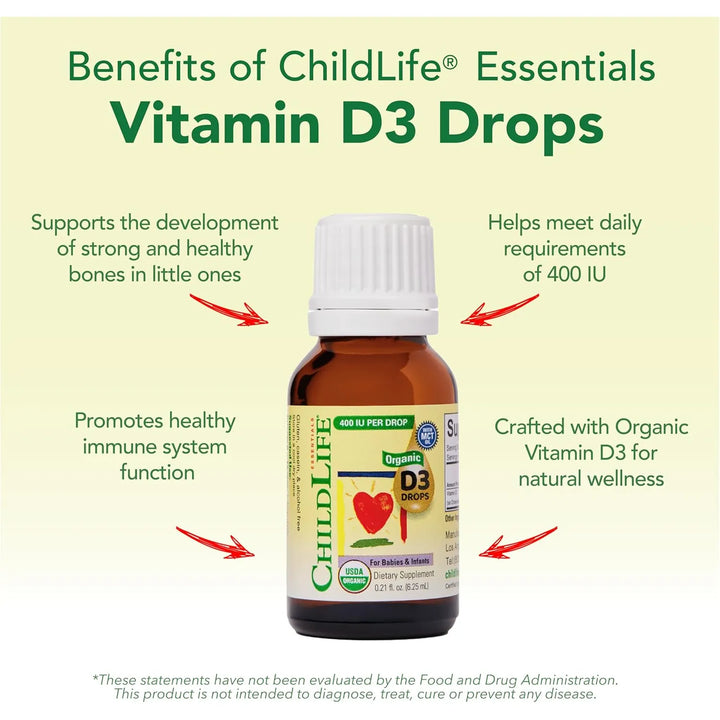 ¿Quieres lo mejor para tu bebé desde sus primeros días? Las Gotas Orgánicas Líquidas de Vitamina D3 de ChildLife Essentials son la solución perfecta para apoyar su crecimiento y desarrollo saludable. Formuladas por pediatras y diseñadas específicamente para recién nacidos y bebés, estas gotas son 100% orgánicas, sin sabor y fáciles de administrar.