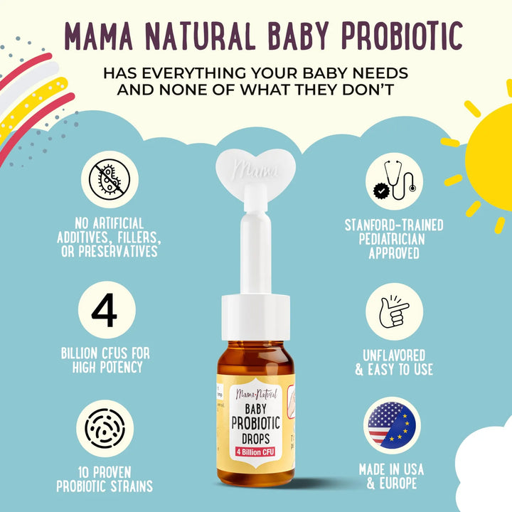 Estas gotas probióticas trabajan repoblando el microbioma intestinal de tu bebé con bacterias beneficiosas. Las cepas específicamente seleccionadas ayudan a equilibrar la flora intestinal, reduciendo la inflamación y mejorando la digestión. Esto se traduce en menos cólicos, menos gases y un bebé más feliz y saludable.