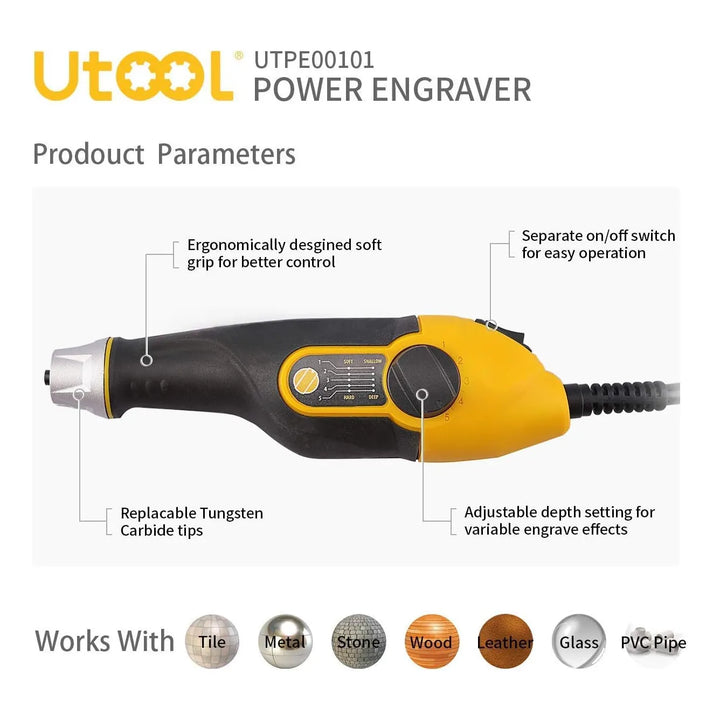 ¿Cansado de herramientas que no cumplen con tus expectativas? Imagina tener en tus manos un grabador que no solo simplifica tu trabajo, sino que también eleva la calidad de tus creaciones. Con el Grabador Profesional UTOOL, cada detalle que grabes en madera, metal, cristal o cualquier superficie será una obra maestra. Este no es solo un grabador, es tu compañero de creatividad, diseñado para aquellos que buscan resultados impecables sin sacrificar comodidad ni tiempo.