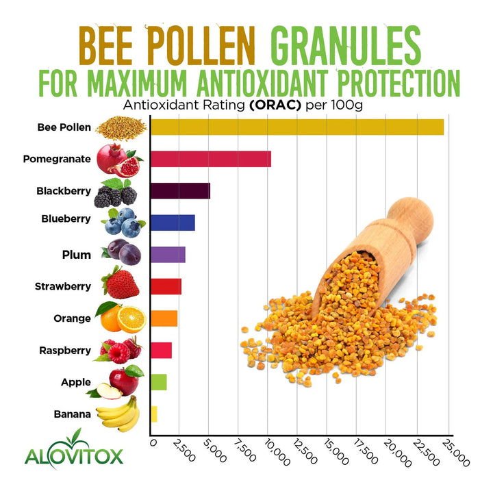 El polen de abeja actúa como un escudo para tu cuerpo. Sus antioxidantes, como la quercetina y el kaempferol, reducen el estrés oxidativo, mientras sus proteínas y vitaminas reparan y energizan tus células. Es como tener un ejército microscópico trabajando para tu salud las 24 horas.