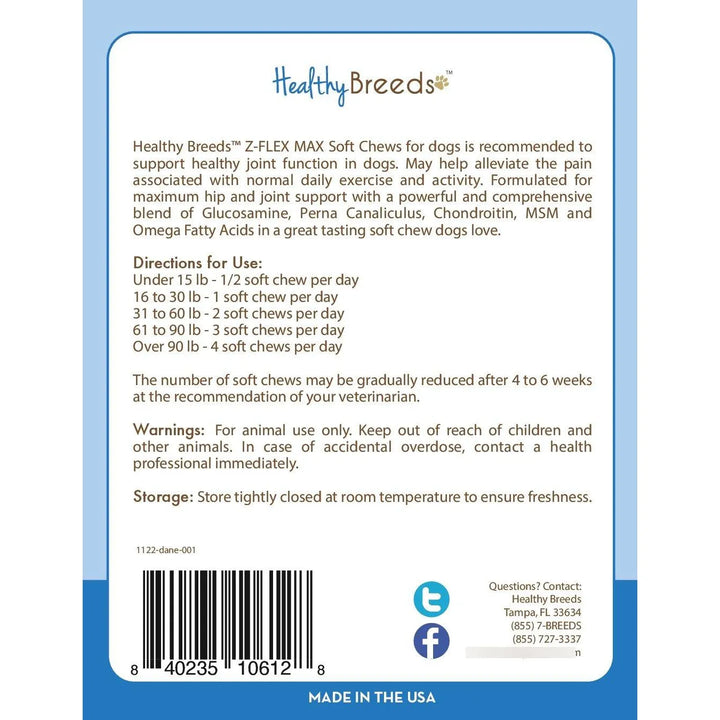¿Tu Gran Danés sufre de rigidez en las articulaciones o dolor de cadera? Imagina verlo correr y jugar como cuando era un cachorro, sin molestias ni limitaciones. Los masticables suaves Z-Flex Max están diseñados específicamente para razas grandes como la tuya, con una fórmula poderosa que combina glucosamina, condroitina y omega-3 para devolverle la movilidad y alegría que merece.