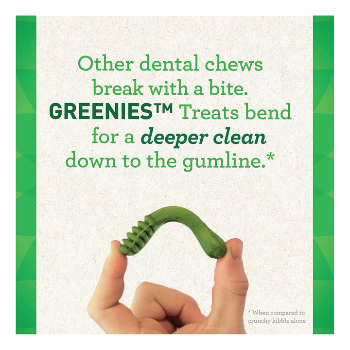 Las golosinas GREENIES Aging Care TEENIE están diseñadas con una textura especial que actúa como un cepillo de dientes natural. Al masticarlas, las fibras únicas eliminan la placa y el sarro, promoviendo encías saludables y un aliento fresco. Además, su fórmula enriquecida con nutrientes ayuda a mantener las articulaciones de tu perro en óptimas condiciones.