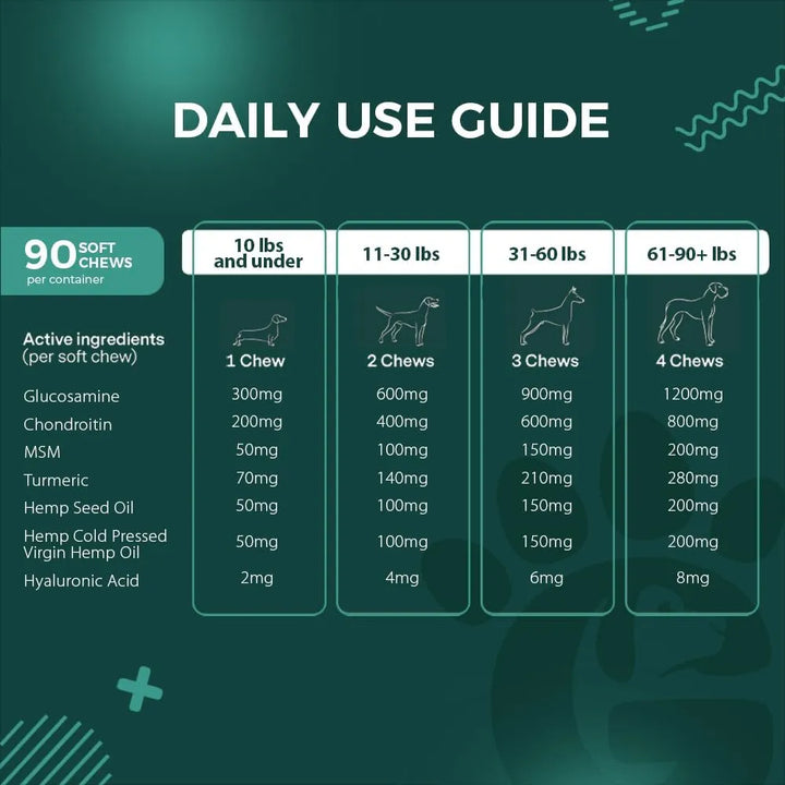 Veterinarios recomiendan estos masticables porque entienden lo que significa ver sufrir a tu perro. Cada ingrediente ha sido seleccionado cuidadosamente para ofrecer el máximo beneficio sin efectos secundarios. Es más que un suplemento; es una promesa de bienestar para tu fiel compañero.