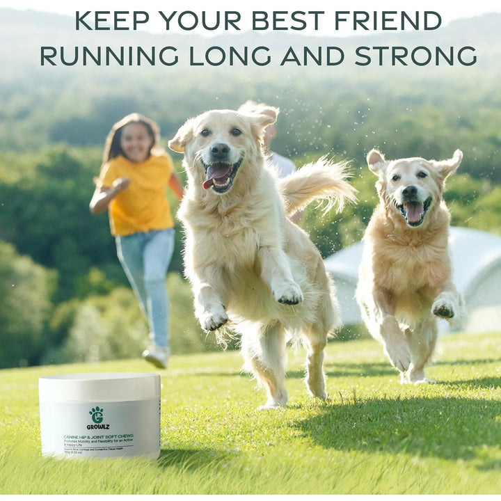 Cuando las articulaciones de tu perro están sanas, todo en su vida mejora. Growlz no solo alivia el dolor temporalmente; trabaja profundamente para reconstruir y proteger las caderas y articulaciones. Con una poderosa combinación de glucosamina, condroitina y cúrcuma, este suplemento es como un abrazo de alivio para las articulaciones cansadas de tu mascota.