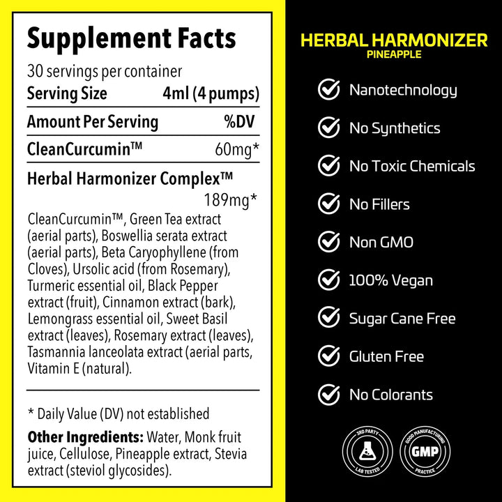 La fórmula avanzada del Harmonizador Herbal trabaja en tres fases clave: Primero, las nanopartículas de curcumina se absorben rápidamente en el torrente sanguíneo, evitando la degradación normal que ocurre con suplementos tradicionales. Segundo, los 12 extractos botánicos complementarios amplifican y prolongan los efectos antioxidantes. Tercero, el complejo actúa a nivel celular, neutralizando radicales libres y reduciendo la inflamación sistémica.