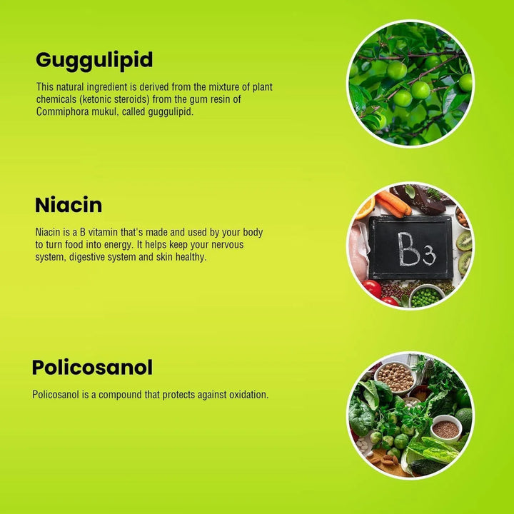 - 🔥 Reduce inflamación y mejora la circulación con policosanol y guggul, ingredientes respaldados por la ciencia.