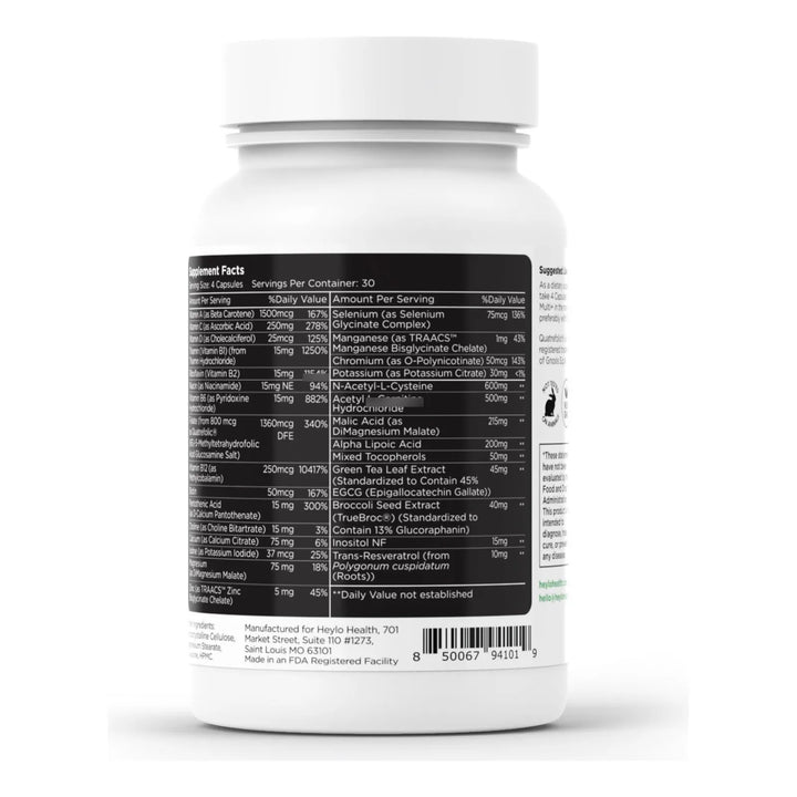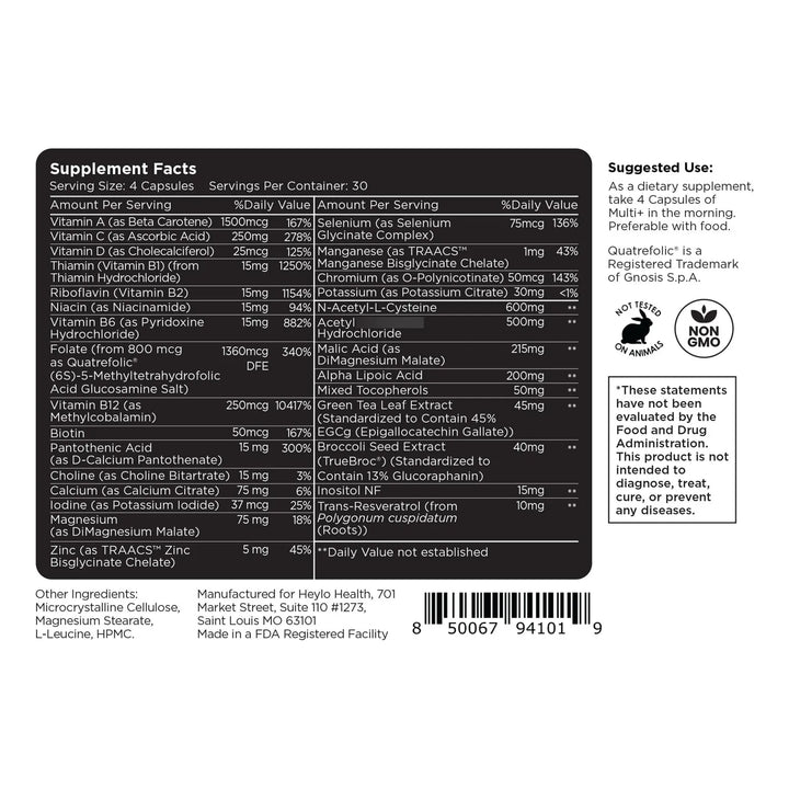 Heylo Multi+ utiliza una fórmula sinérgica: cada vitamina, mineral y antioxidante está dosificado para potenciar a los demás. El ácido alfalipoico recicla otros antioxidantes, el zinc activa enzimas clave y las vitaminas B convierten los alimentos en combustible eficiente. Es como un equipo de élite trabajando dentro de ti las 24 horas.
