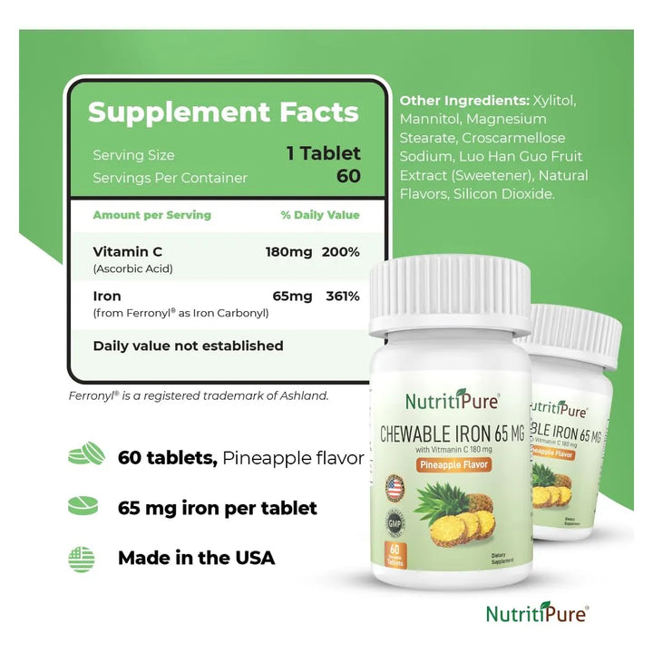 Hierro Masticable Carbonilo 65 mg con Vitamina C 180 mg: La Solución Perfecta para Tu Bienestar
